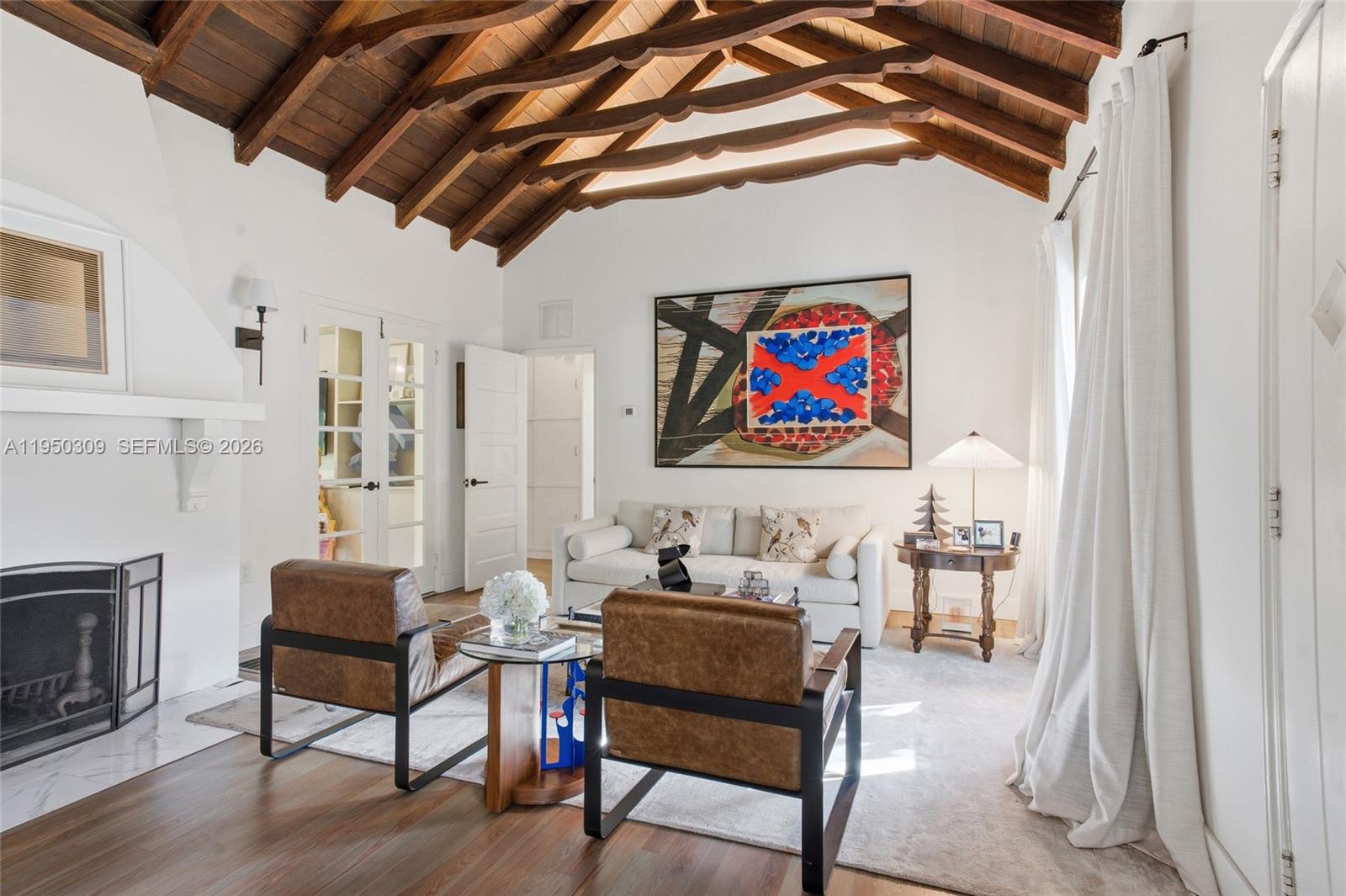 Updated 3-Bedroom, 2-Bathroom Home on Rare Double Lot in El Portal Charming and updated 1930s bungalow in the heart of El Portal, situated on a rare double lot offering exceptional flexibility for end users, investors, or developers. A long private driveway provides ample off-street parking, while the oversized lot allows for a generous backyard, future expansion, or potential redevelopment (buyer to verify). The home features a thoughtful blend of wood and terrazzo floors, vaulted wood-beam ceilings, and a bright open-concept kitchen that flows seamlessly into the family room--ideal for everyday living and entertaining. The living and dining area is anchored by a fully functioning fireplace, adding warmth and character. All bedrooms are well-proportioned with ample closet space. The primary suite includes a double-sink vanity and walk-in shower. Additional highlights include impact windows and a new septic drain field, offering peace of mind for the next owner. Centrally located with easy access to I-95, Biscayne Boulevard, Downtown Miami, Design District, Wynwood, and Miami Shores, as well as nearby parks, dining, shopping, and public transportation. A rare opportunity to own a move-in-ready home with significant land value and long-term upside in El Portal. Actual SqFootage of living area is 1,690. All property information is believed to be accurate but must be verified by buyer at buyer's expense.